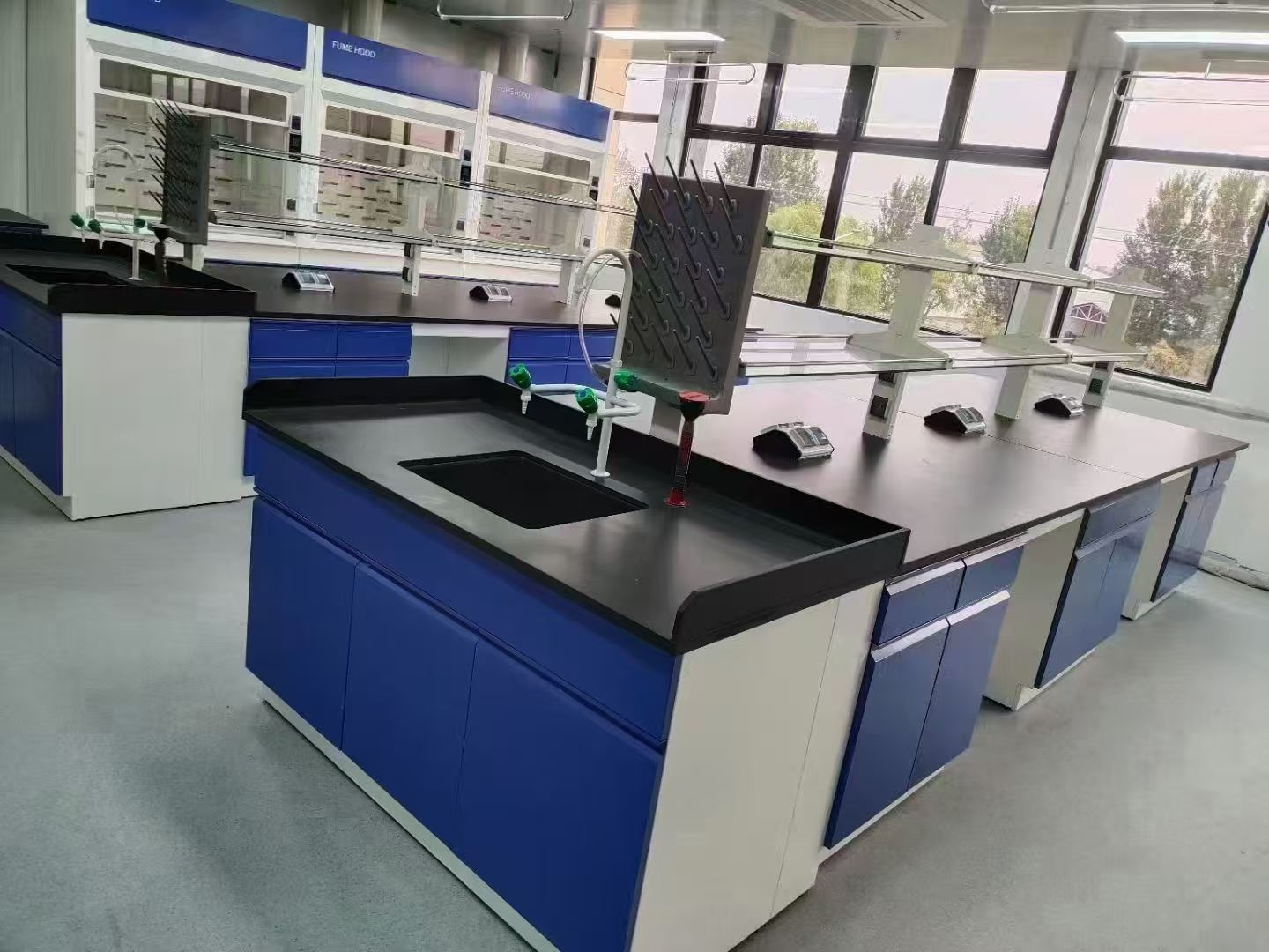 如果實驗室面積較大,建議使用中臺和邊臺,這個涉及到房間地地面的水電改造,會稍微復雜點。
